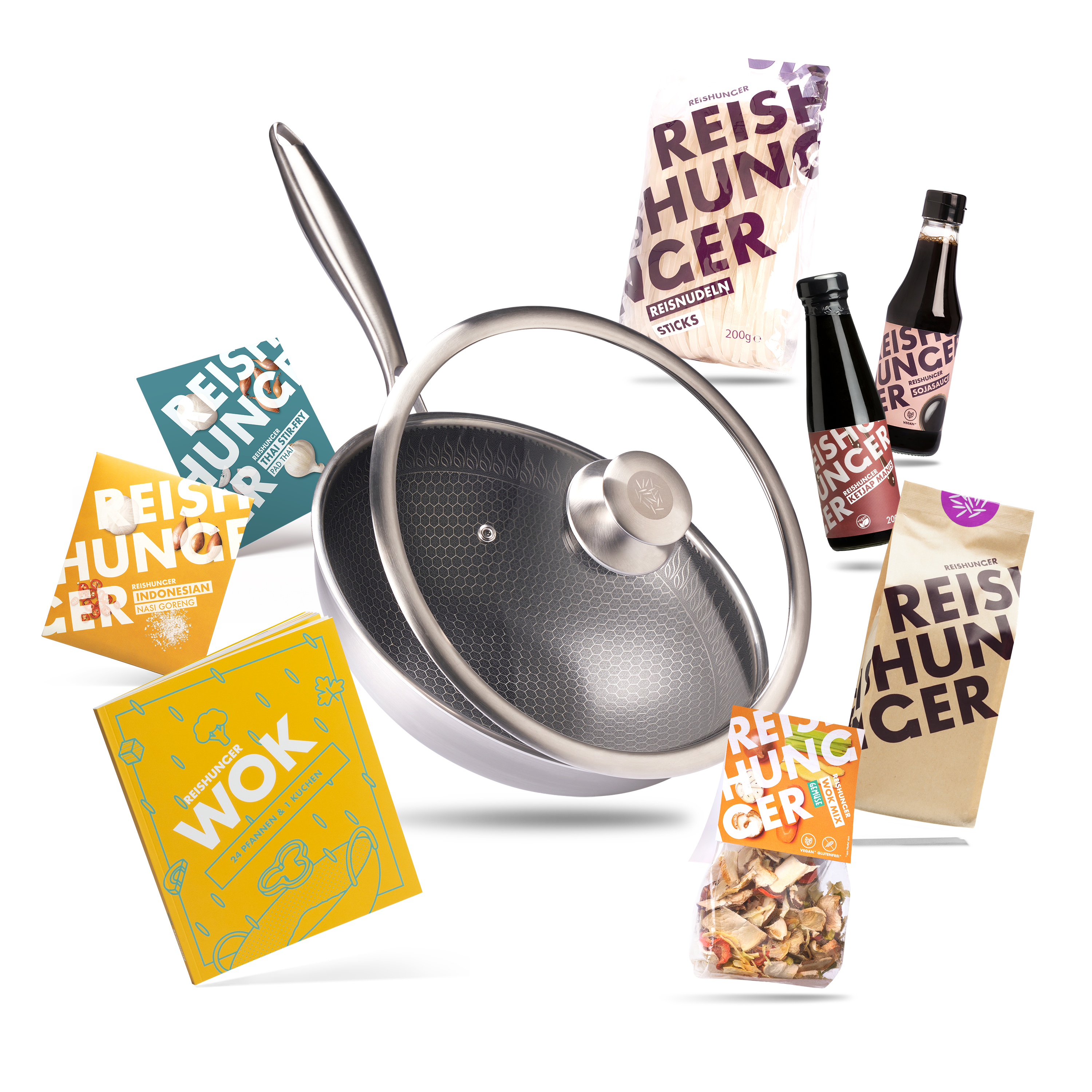 Wok Starter Set (9-teilig) | Premium Edelstahl Wok | Wok Zutaten