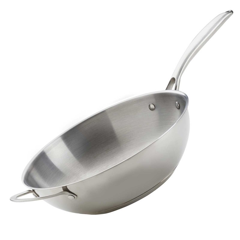 METRO PROFESSIONAL Wok, Edelstahl, Ø 30 cm, Höhe: 12.8 cm, unbeschichtet, Induktion, ofenfest