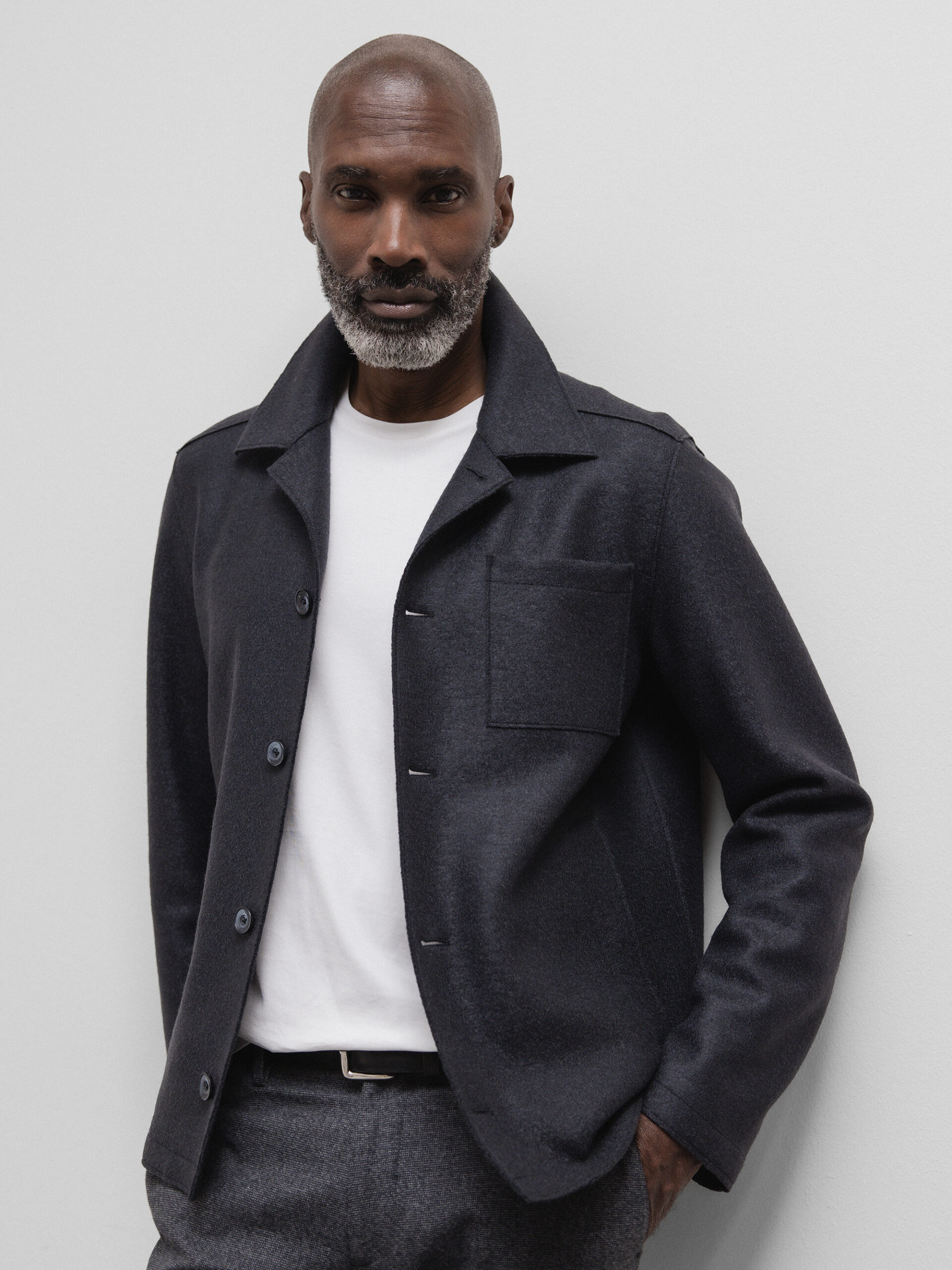 2732AB PAOLO PECORA graue Mikro-Fantasie-Baumwoll-Wolljacke Mann