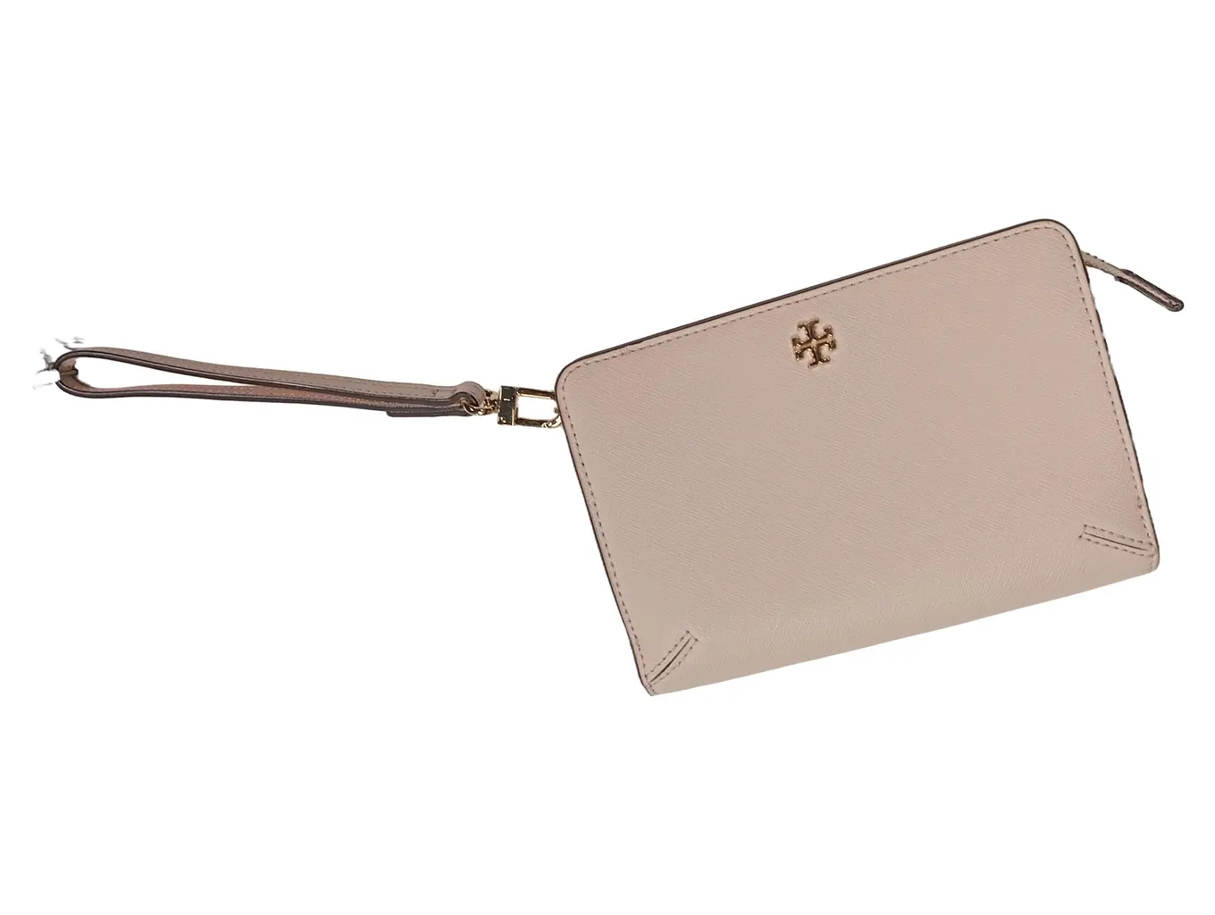 TORY BURCH Wristlet Clutch Leder Beige Damen Klein Elegant Logo