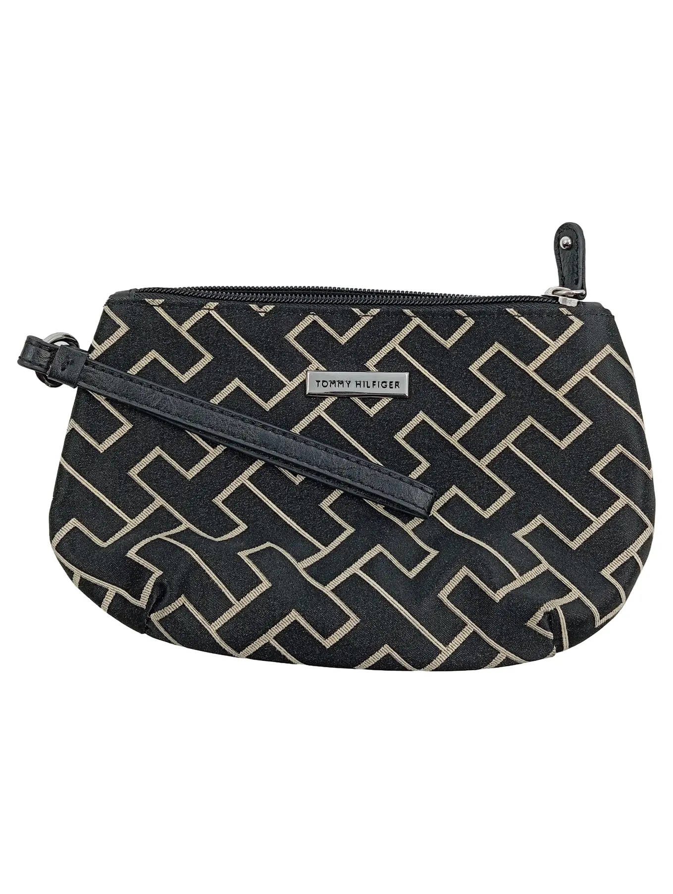 TOMMY HILFIGER Clutch Wristlet Damen Schwarz Beige Monogramm Tasche