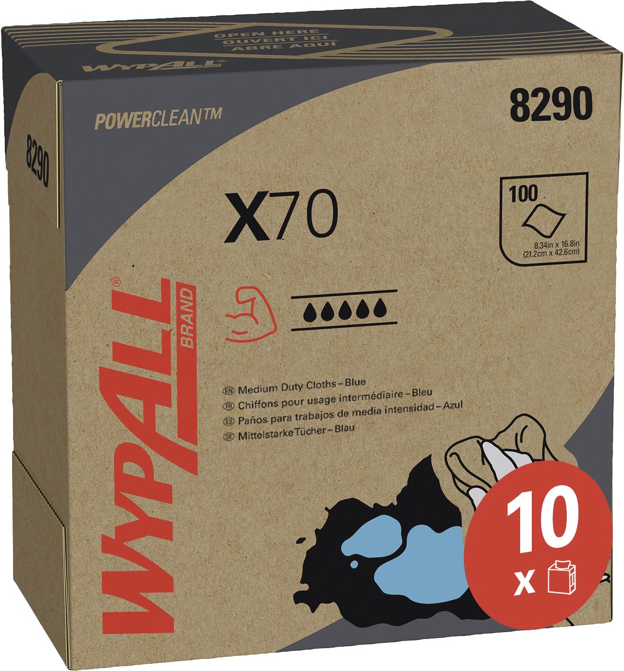 Putztuch "WypAll X70 Power Clean " L x B 426 x 212 mm, blau, 1-lagig, 10 x Spenderbox á 100 Tücher (1.000 Tücher), 8290