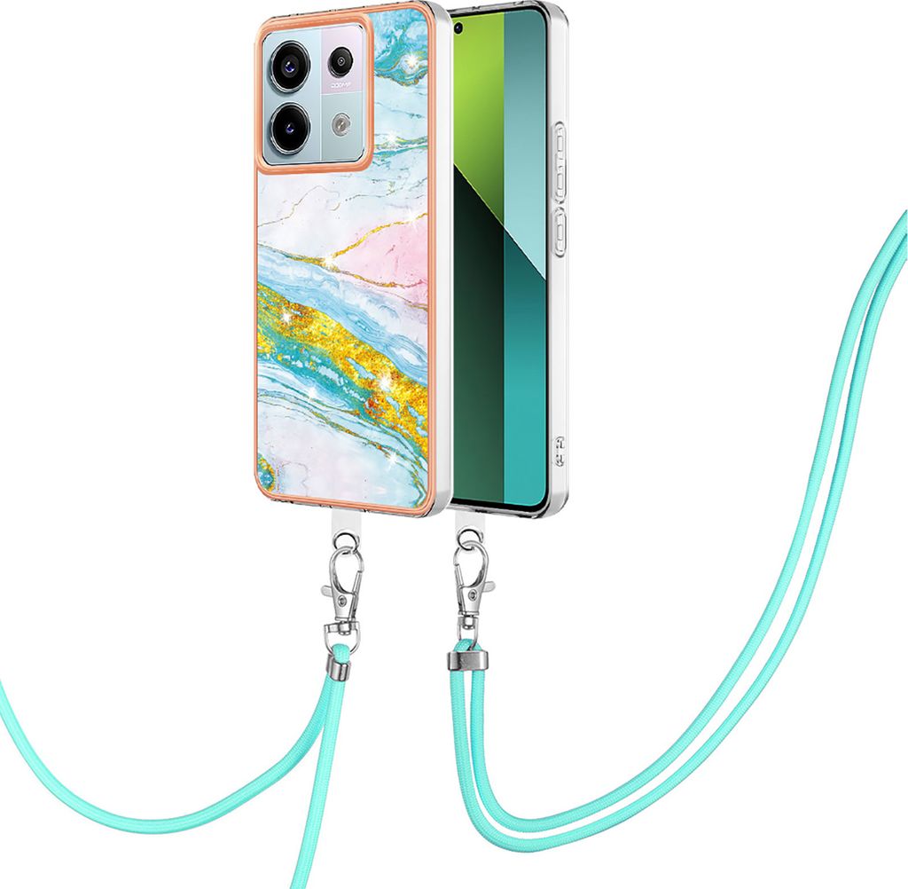 Handykette Hülle für Xiaomi Redmi Note 13 Pro 5G Muster TPU Schutzhülle mit verstellbarem Tragegurt Türkis