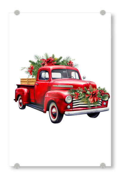 Acrylglasbild "Red Christmas Truck Xmas Decor Art" artboxONE - Floral,Automobile,Weihnachten,Festivals,Lustig