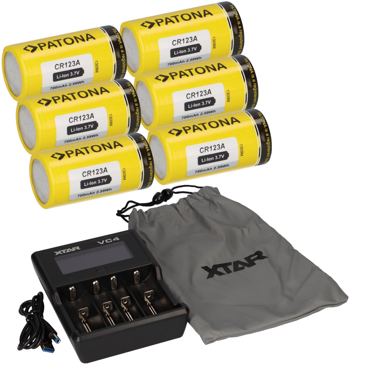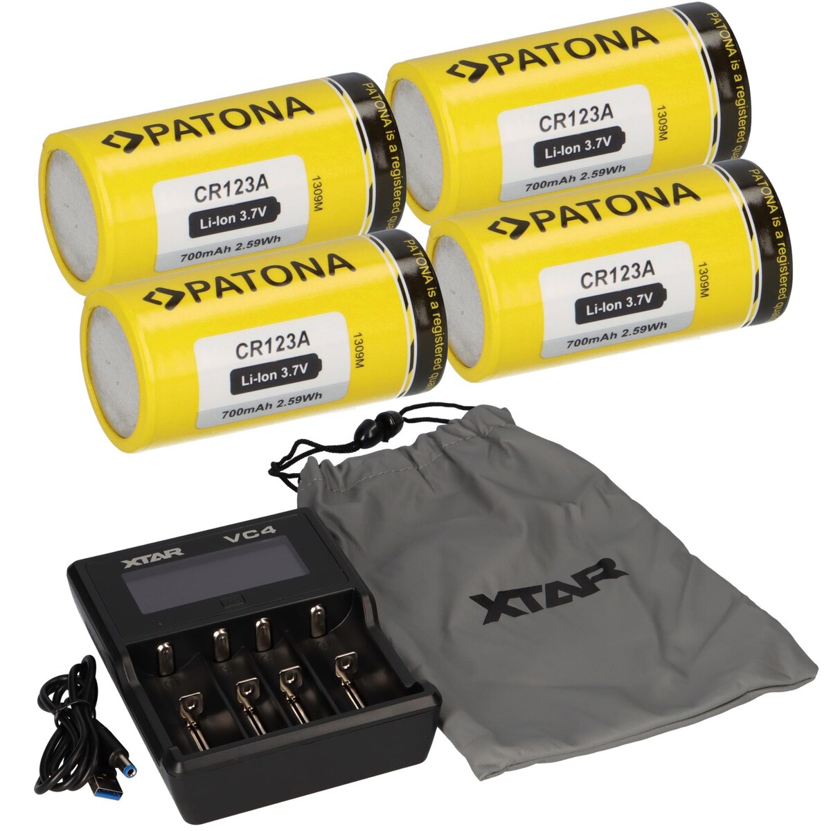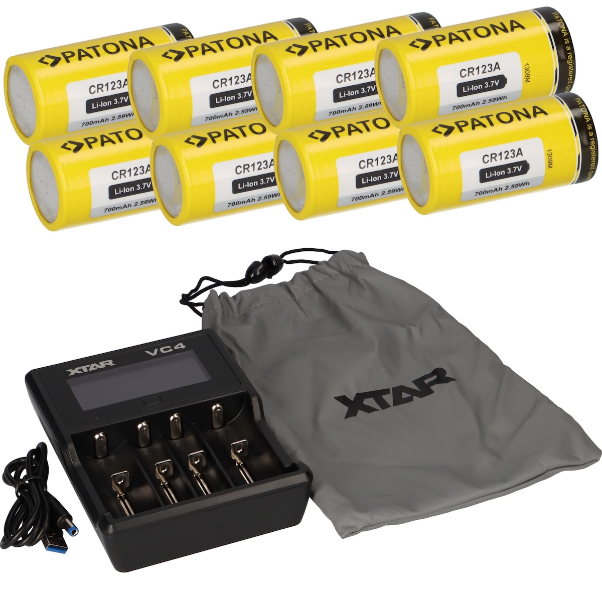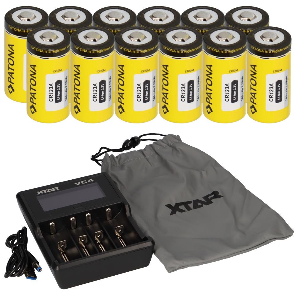 Set 12x Patona CR123A + Xtar VC4 Ladegerät Li-Ion NiMH