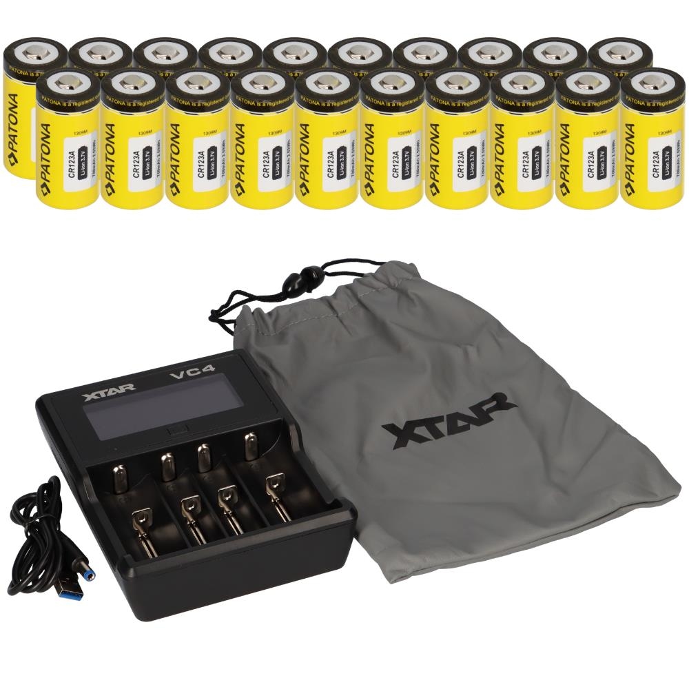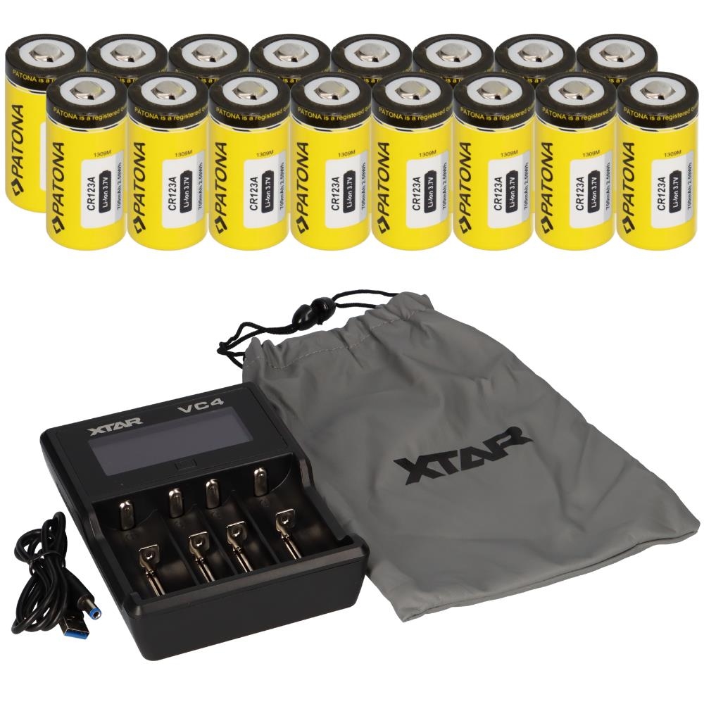 Set 16x Patona CR123A + Xtar VC4 Ladegerät Li-Ion NiMH