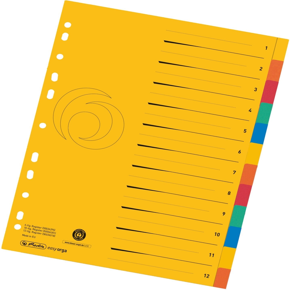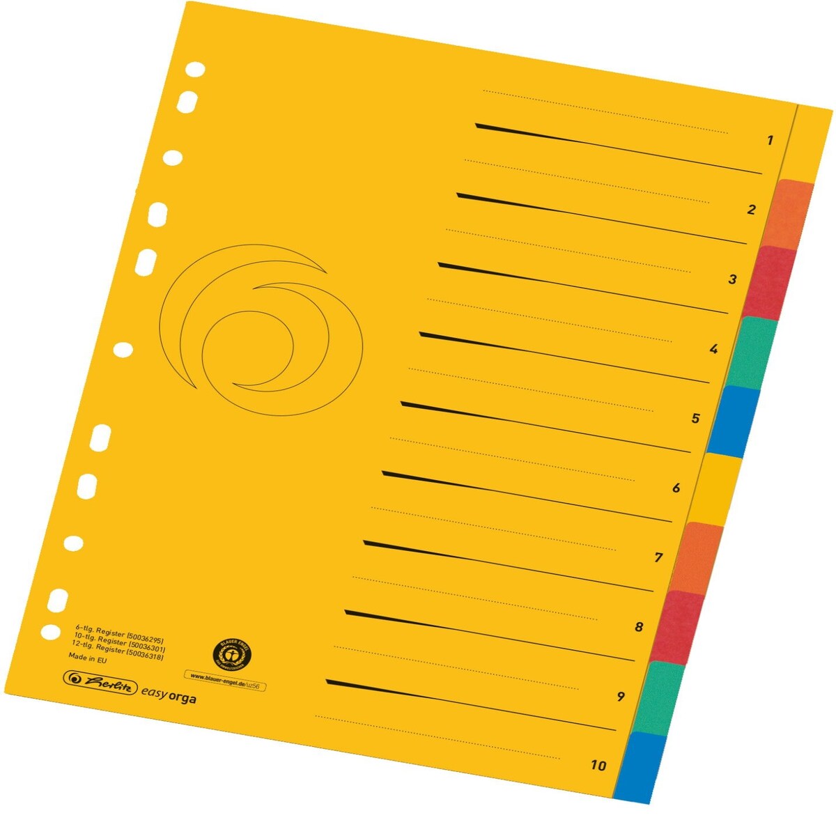 perfect line - Ordner-Register XXL DIN-A4, 10-teilig, 3er Set, Karton, Germany, Blauer Engel