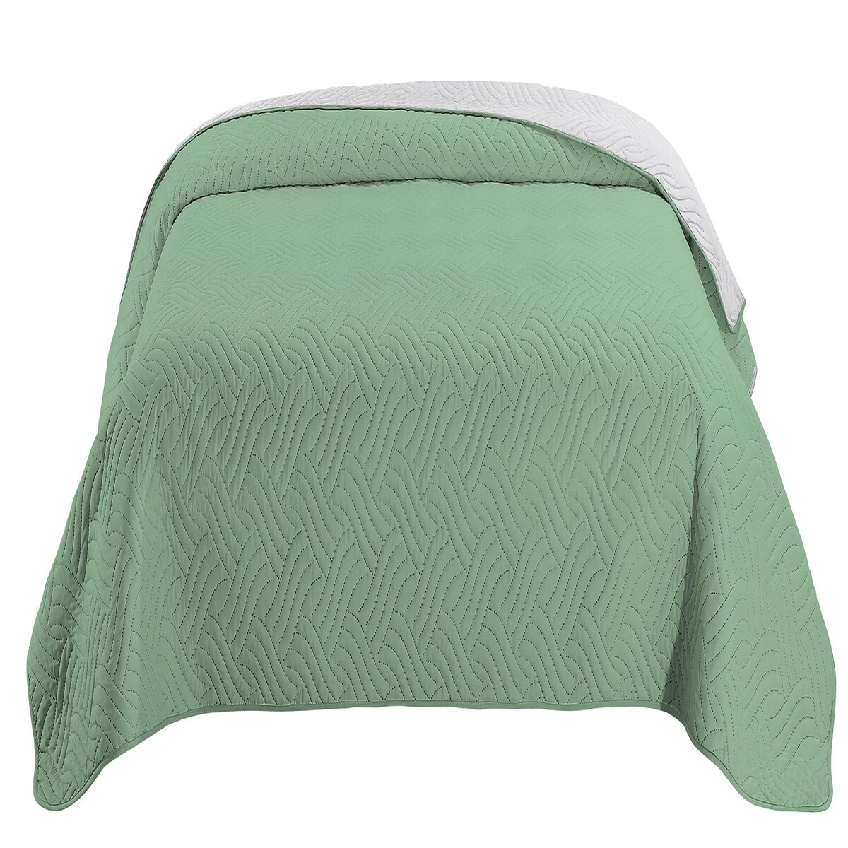 wometo Tagesdecke 170x210 OEKO-TEX - grün hellgrau Microfaser-Bezug wattiert gesteppt Wende-Design XXL Sofa Couch Bett Bettüberwurf