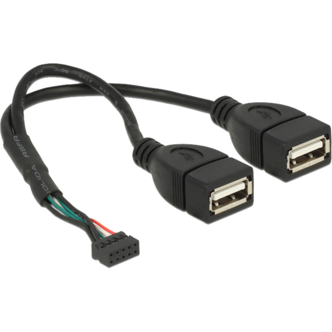 DeLOCK USB 2.0 Y-Kabel, 10 Pin Header > 2x USB-A Buchse, schwarz, 20cm