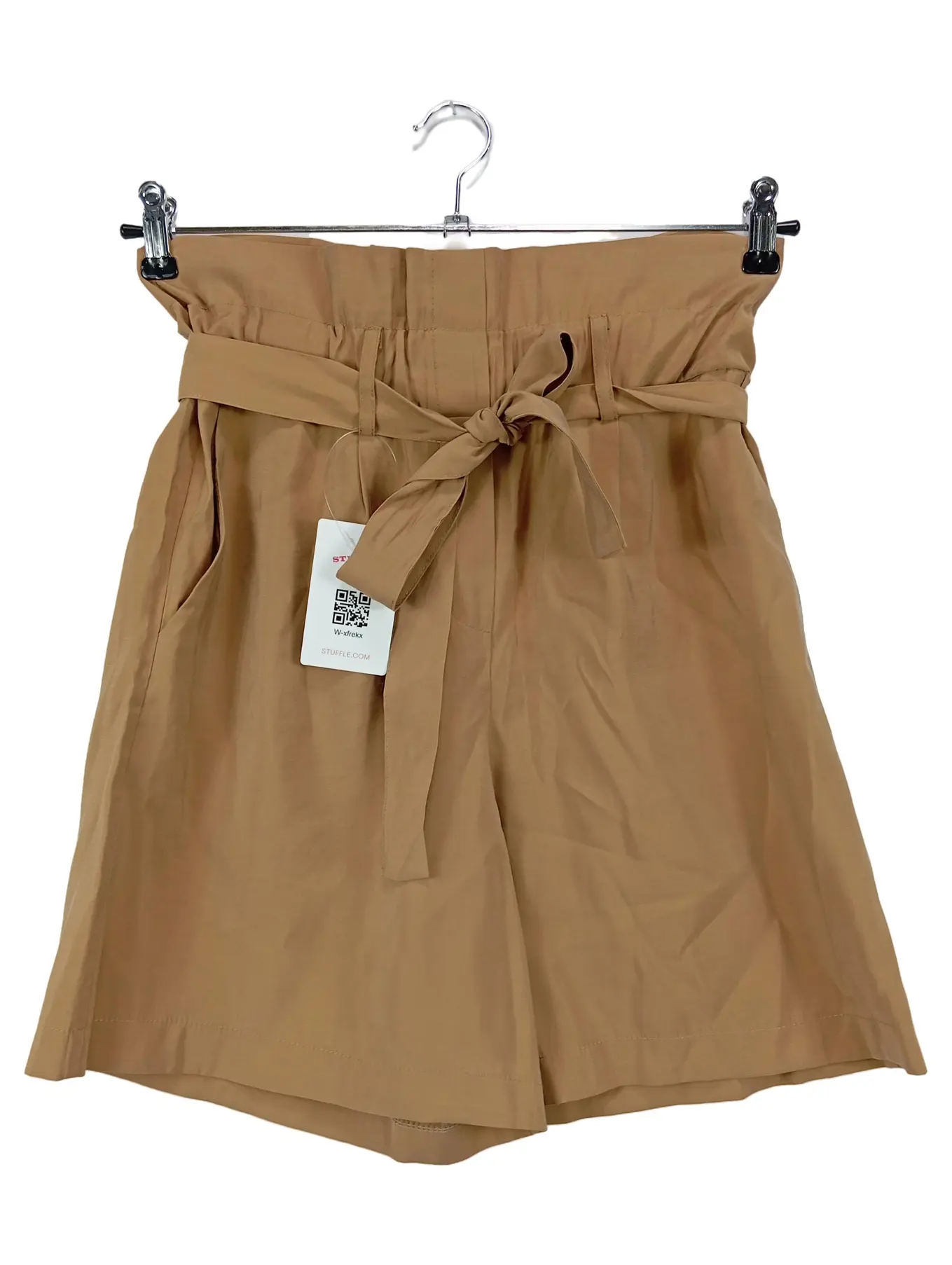 8 BY YOOX Damen Shorts Gr. 42 Braun Paperbag High Waist Elegant Vintage