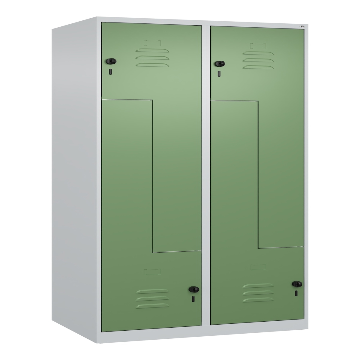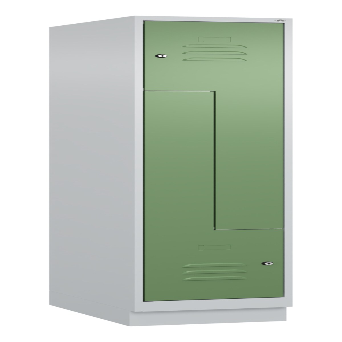 C+P Z-Spind, Classic PLUS, Sockel, 2 Fächer, 1950x300x500mm, 7035/6011 Verschluss Sicherheits-Drehriegel ; C + P Möbelsysteme