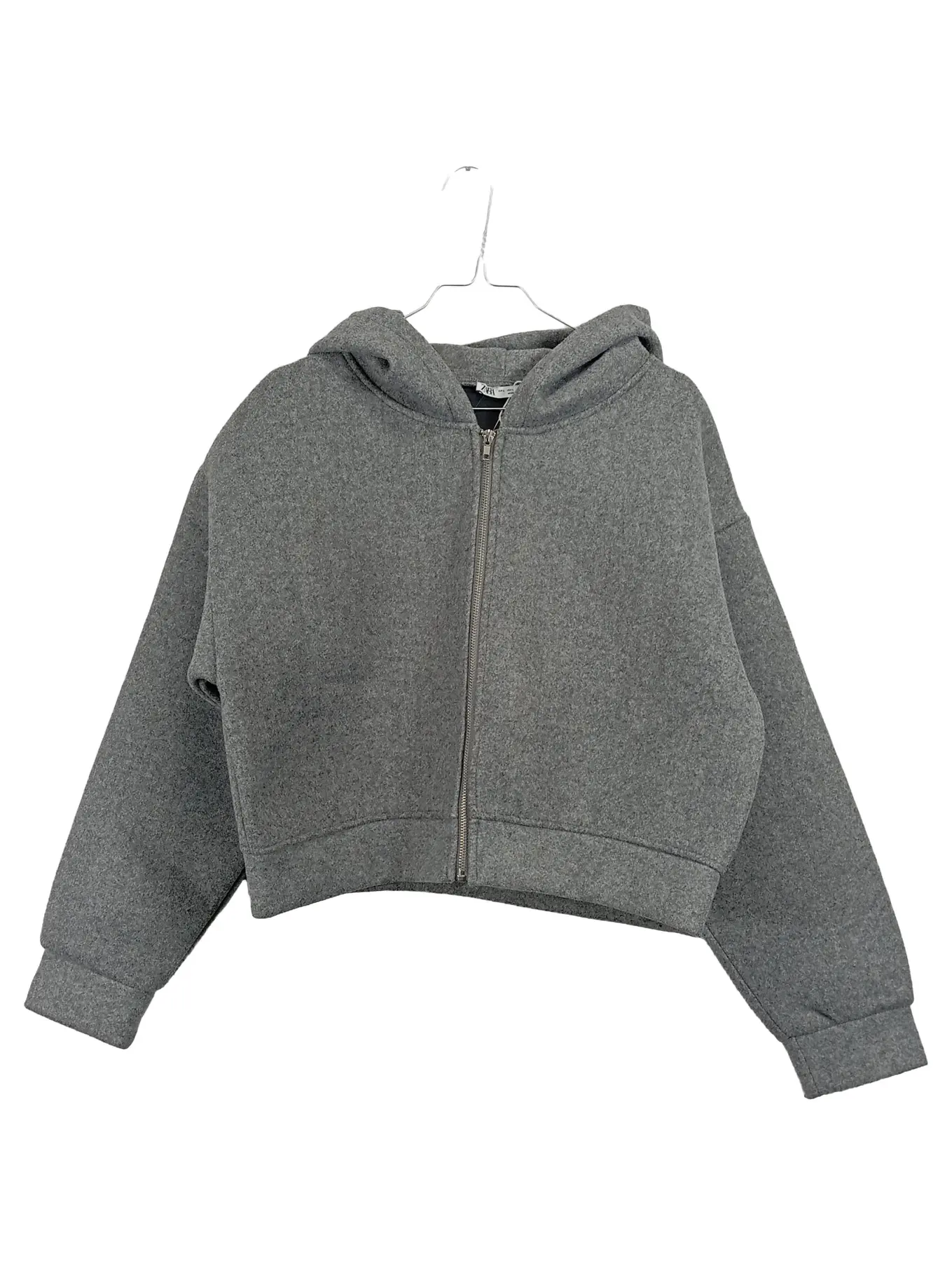 ZARA Damen Sweatjacke Kapuzenjacke Gr. L grau meliert Cropped Hoodie