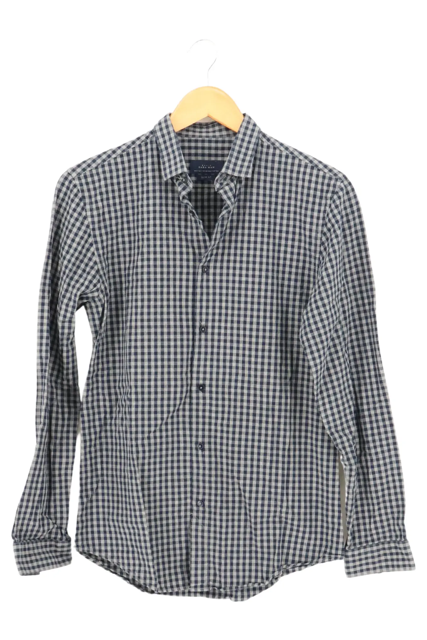 ZARA MAN Herren Freizeithemd S/44 Blau Kariert Casual Langarm