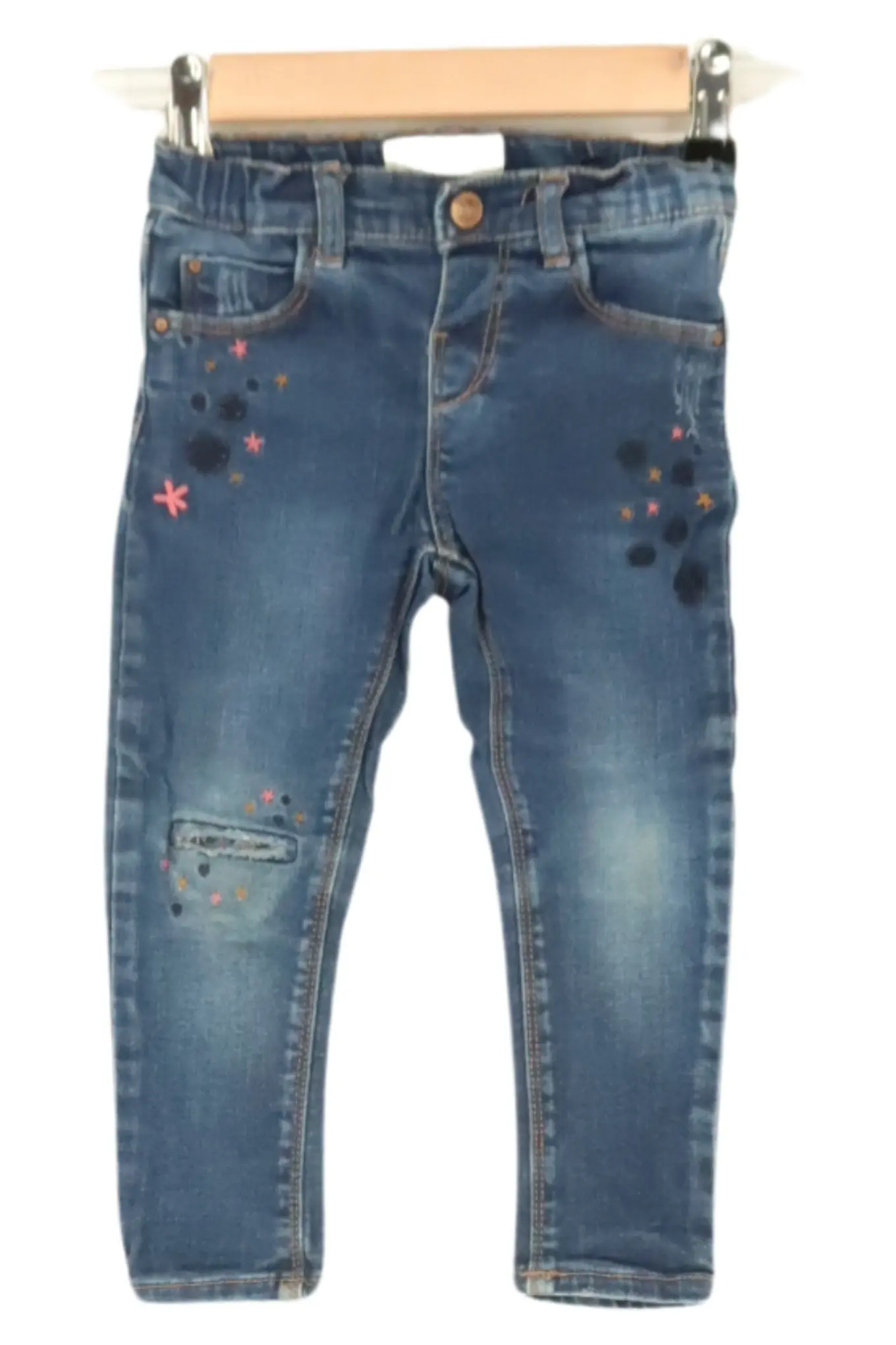 ZARA Kinder Jeans Regular Fit Blau Gr. 116 Stickerei Lochmuster Baumwolle