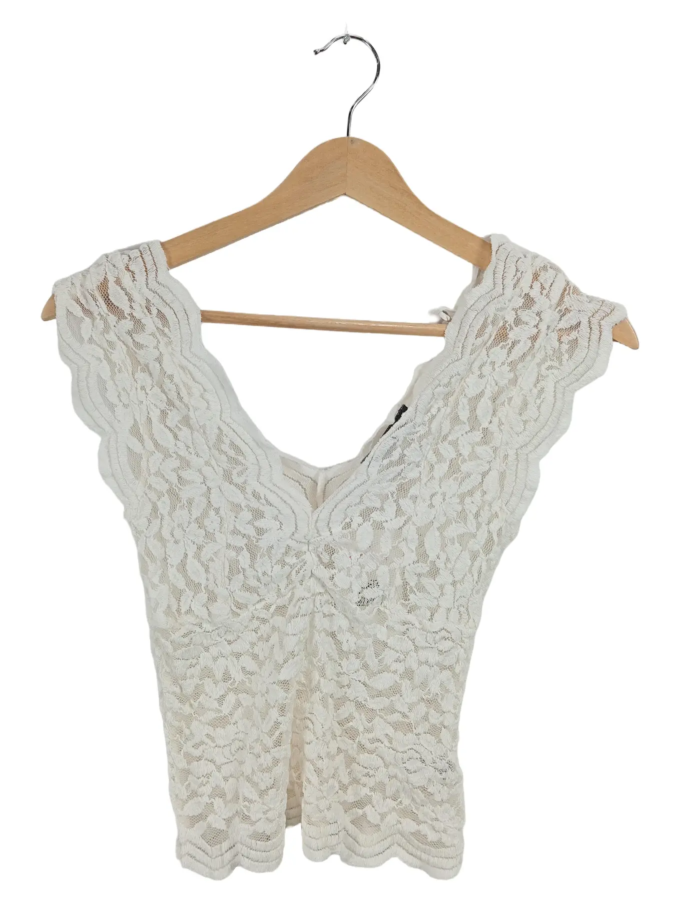 ZARA Damen Spitzen-Top V-Ausschnitt Kurzarm Weiß Gr. S Floral