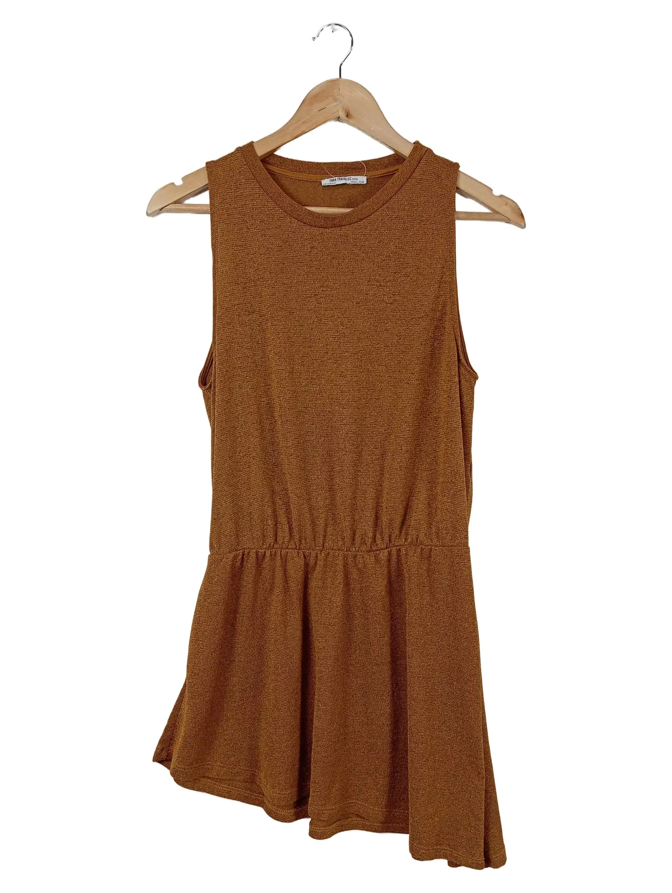 ZARA Damen Freizeitkleid Gr. 36/S Braun Casual ärmellos Minikleid