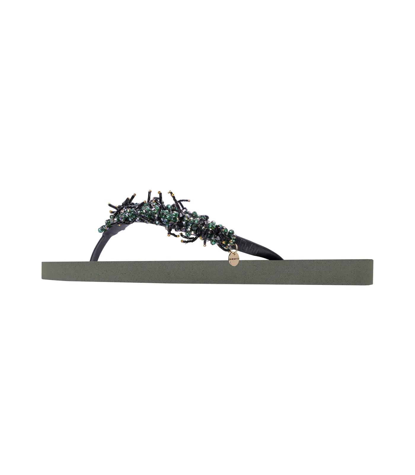 UZURII Slipper & Pantoletten - Zehentrenner Silver Macrame Switch - Gr. 37,5 (EU) - in Grün - für Damen - aus Kunstleder & Gummi & Gummi