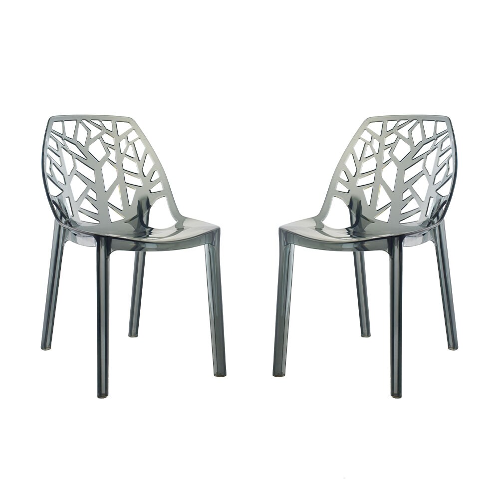 RATTATAN Set aus 2 Stühlen aus Polycarbonat, ergonomische Sitzfläche, stapelbar, modernes Design für Küche, Esszimmer, Bar, Restaurant – Zelda –