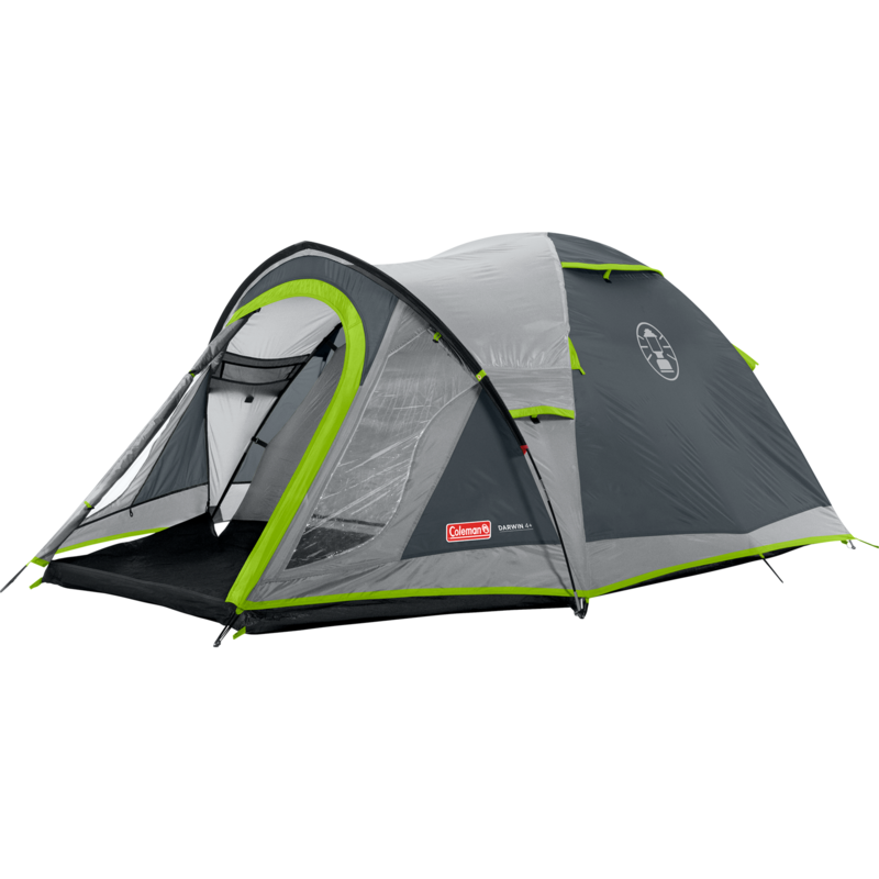 Coleman 3-Personen-Kuppelzelt Darwin 4 Plus Zelt, grau/hellgrün, mit