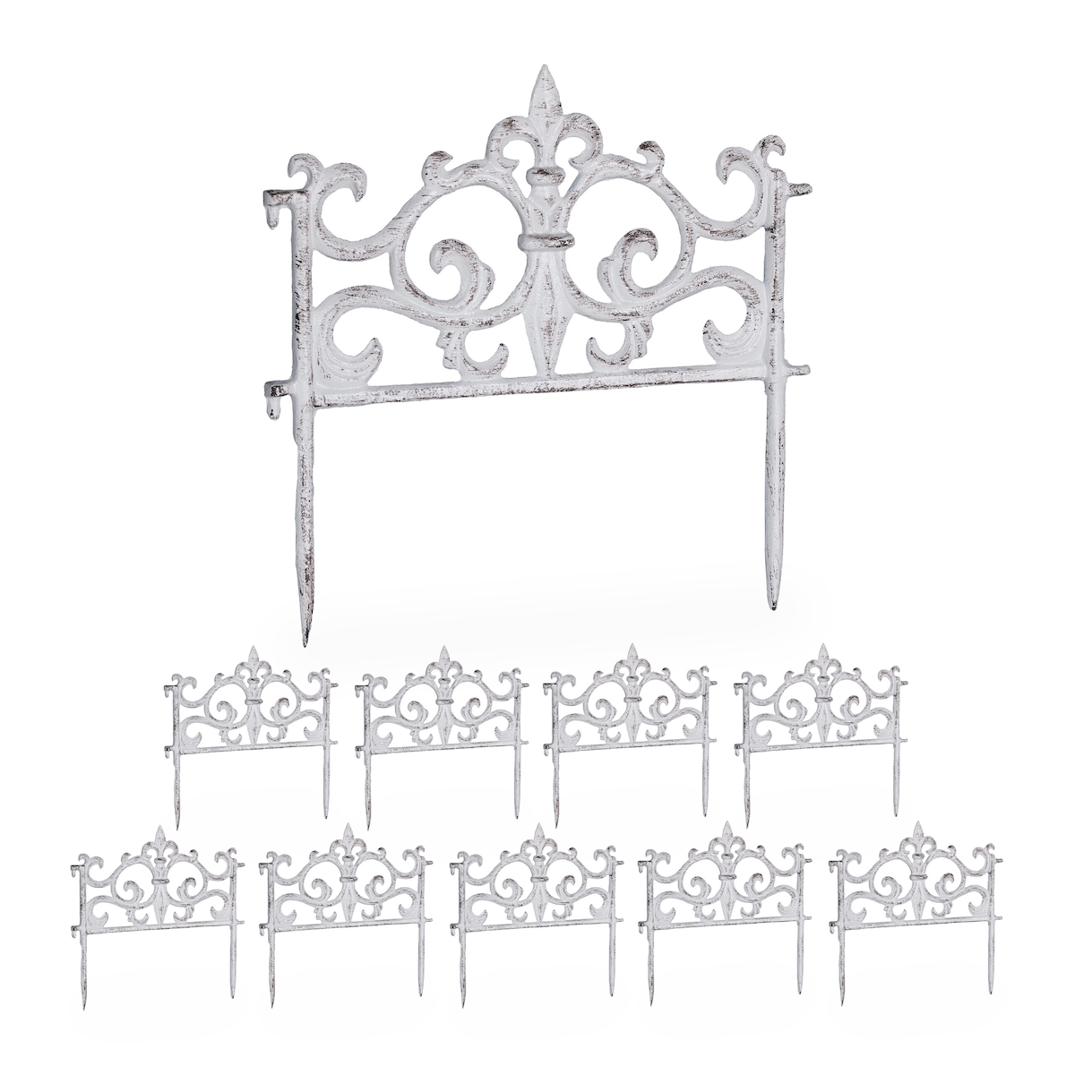 Relaxdays Beetzaun, 10er Set, Gusseisen, HxB: 27 x 27 cm, Vintage Design, Beetumrandung zum Stecken, Zierzaun, weiß
