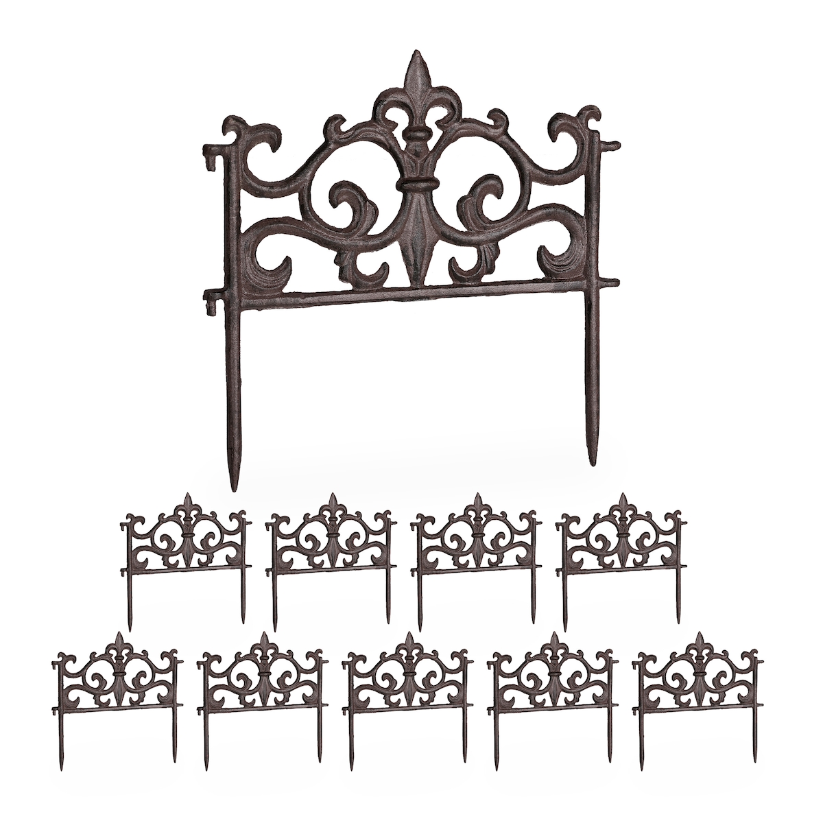 Relaxdays Beetzaun, 10er Set, Gusseisen, HxB: 27 x 27 cm, Vintage Design, Beetumrandung zum Stecken, Zierzaun, braun