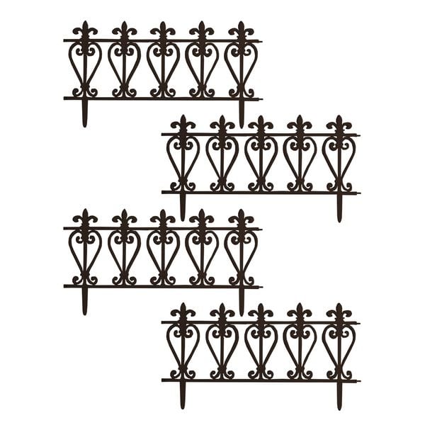 8 Stück Klassischer Beetzaun, breiter Zierzaun aus Gusseisen, 82 x 36 cm, Beetabgrenzung mit Erdspießen