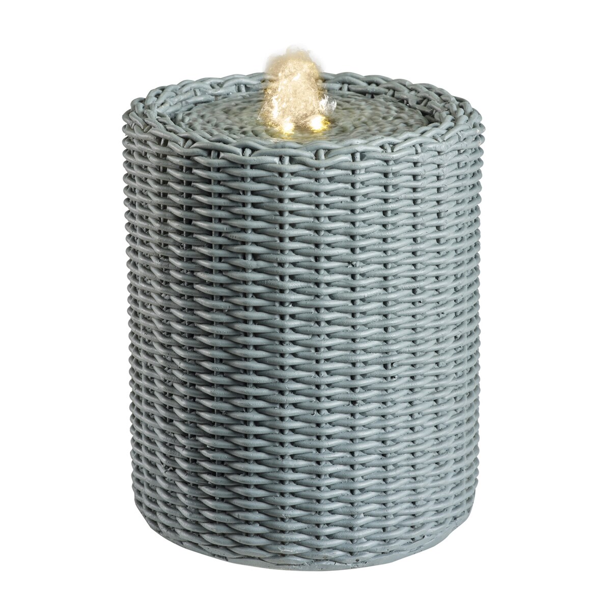 MARELIDA Brunnen Zimmerbrunnen beleuchtet Innen Tischbrunnen Rattan Korb 20cm grün