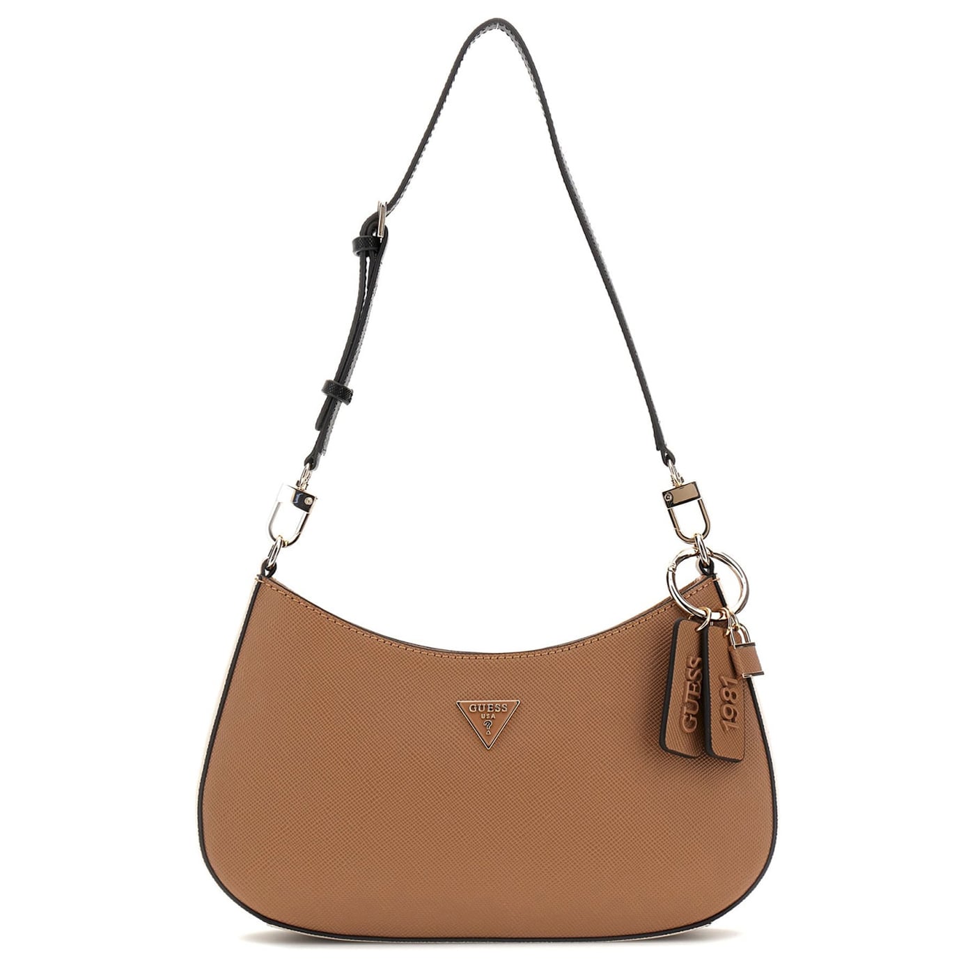 Guess Beuteltasche Noelle II Top Zip Shoulder Bag (HWZG) tan/multi, Damen Handtasche beige aus Kunstleder