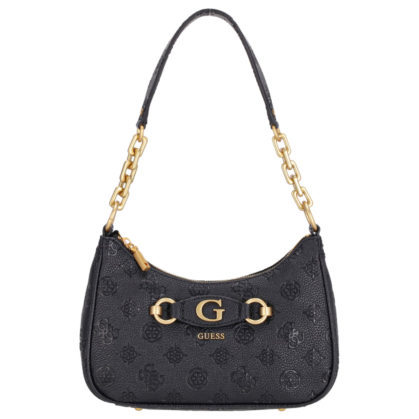 Guess Beuteltasche Izzy Peony Top Zip Shoulder Bag black logo, Damen Handtasche schwarz aus Kunstleder
