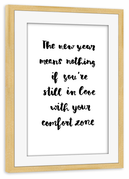 Poster mit Rahmen kiefer "New Year 3" artboxONE - Typografie,Schwarzweiß - Handaufteilung,Neujahr,Comfort zone,Neujahr,Silvester,Komfortzone