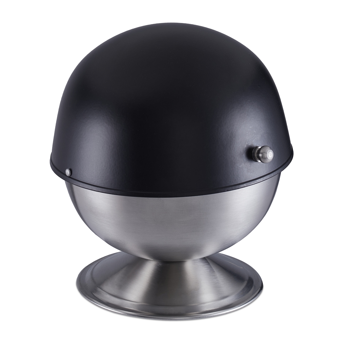 Relaxdays Zuckerdose, Edelstahl, Zuckerkugel mit Deckel, für Würfelzucker & Bonbons, HxD: 15,5 x 14 cm, schwarz/silber