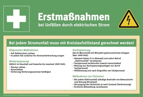 Dreifke Zusatzschild Erstmaßnahmen bei Unfällen mit elektr. Strom, PVC, 410x...