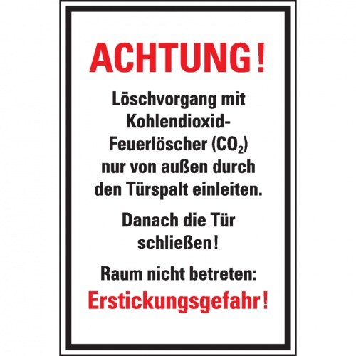 Dreifke Aufkleber I Zusatzschild, Löschvorgang mit CO² Feuerlöscher im Raum ...