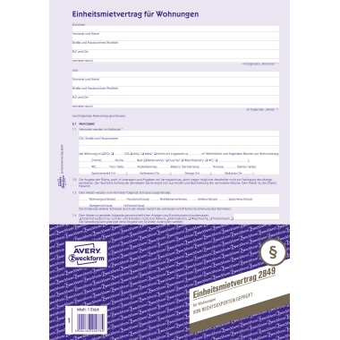 AVERY Zweckform 2849 Mietvertrag mit Hausordnung - DIN A4 - 4-seitig
